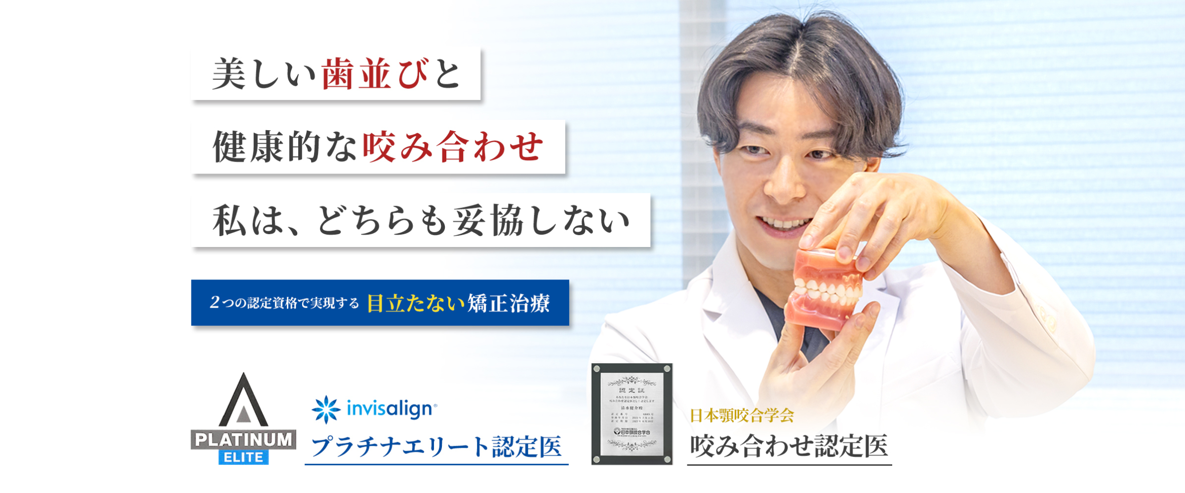 インビザライン・プラチナエリート認定医と日本顎咬合学会「咬み合わせ認定医」ー。2つの認定資格を持つ院長が、美しい歯並びと健康的な噛み合わせにこだわった矯正歯科をご提供。
