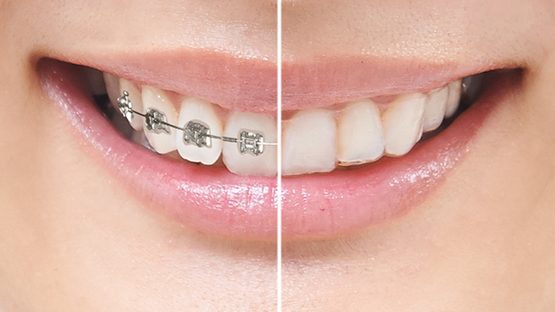 従来のワイヤー矯正は、金属の矯正装置を使用して歯並びを整えます。