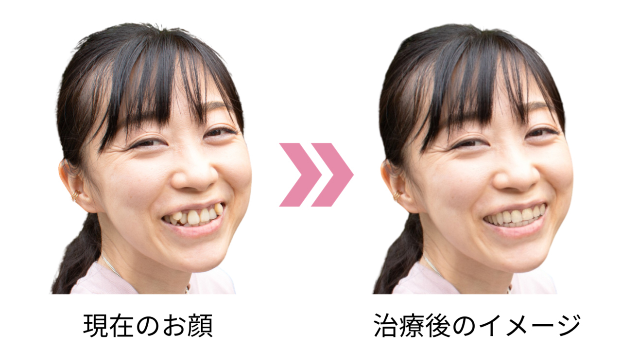 患者さまのお顔の写真を撮影し、その写真に歯並びの変化を合成。現在のお顔が、歯並びがキレイになった後にどう変化するかをシミュレーションでお見せします。