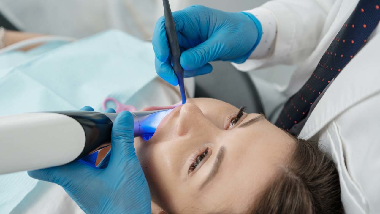 最新の口腔内スキャナー「iTero(アイテロ)」を使って、患者さまの歯をスキャンします。