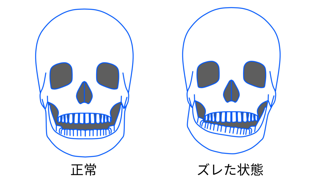 奥歯の噛み合わせが悪いと、上顎と下顎の骨の位置がズレます。